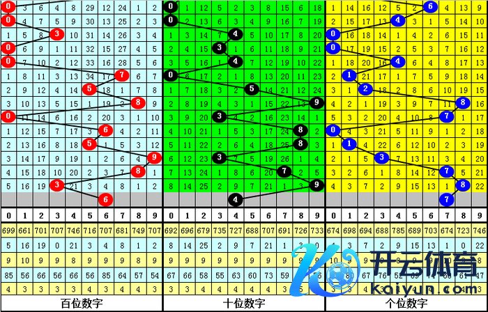 其中,号码0-9开出次数辞别为:号码0开出5次、1开出2次、2开出0次、3开出4次、4开出0次、5开出3次、6开出6次、7开出0次、8开出7次、9开出3次。