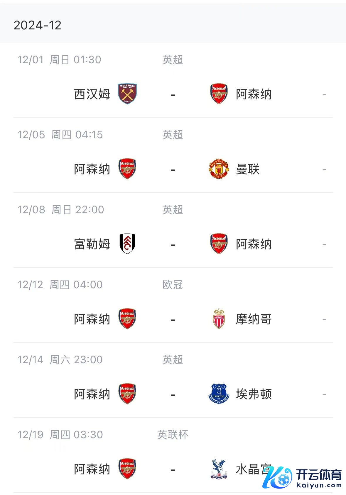 继续连胜势头?阿森纳12月8场比赛均在伦敦,5主场3客场体育赛事直播