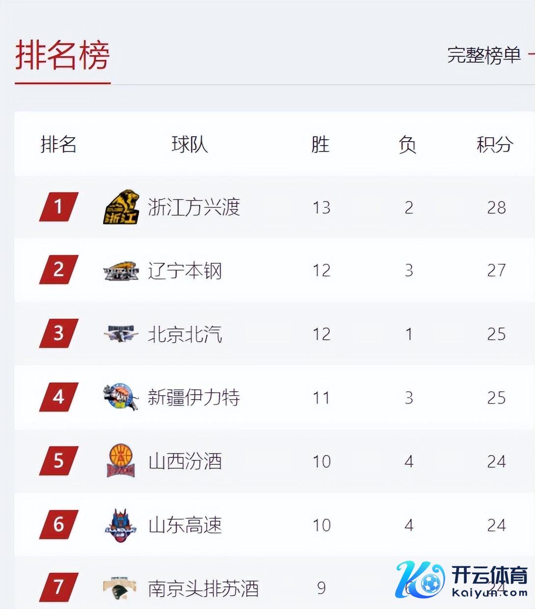 山西队和山东队还没打比赛,是以他们的战绩照旧10胜4负,排行也照旧第5和第6位。第7位是同曦队,战绩是9胜6负。